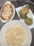 Shrimp smothered in our homemade creamy fettuccini Alfredo.