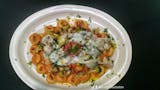 Shrimp with sautéed mushrooms, spinach, and broccoli served over penne pasta and covered with our creamy Alfredo sauce. Topped with baked mozzarella cheese and fresh diced tomatoes.
